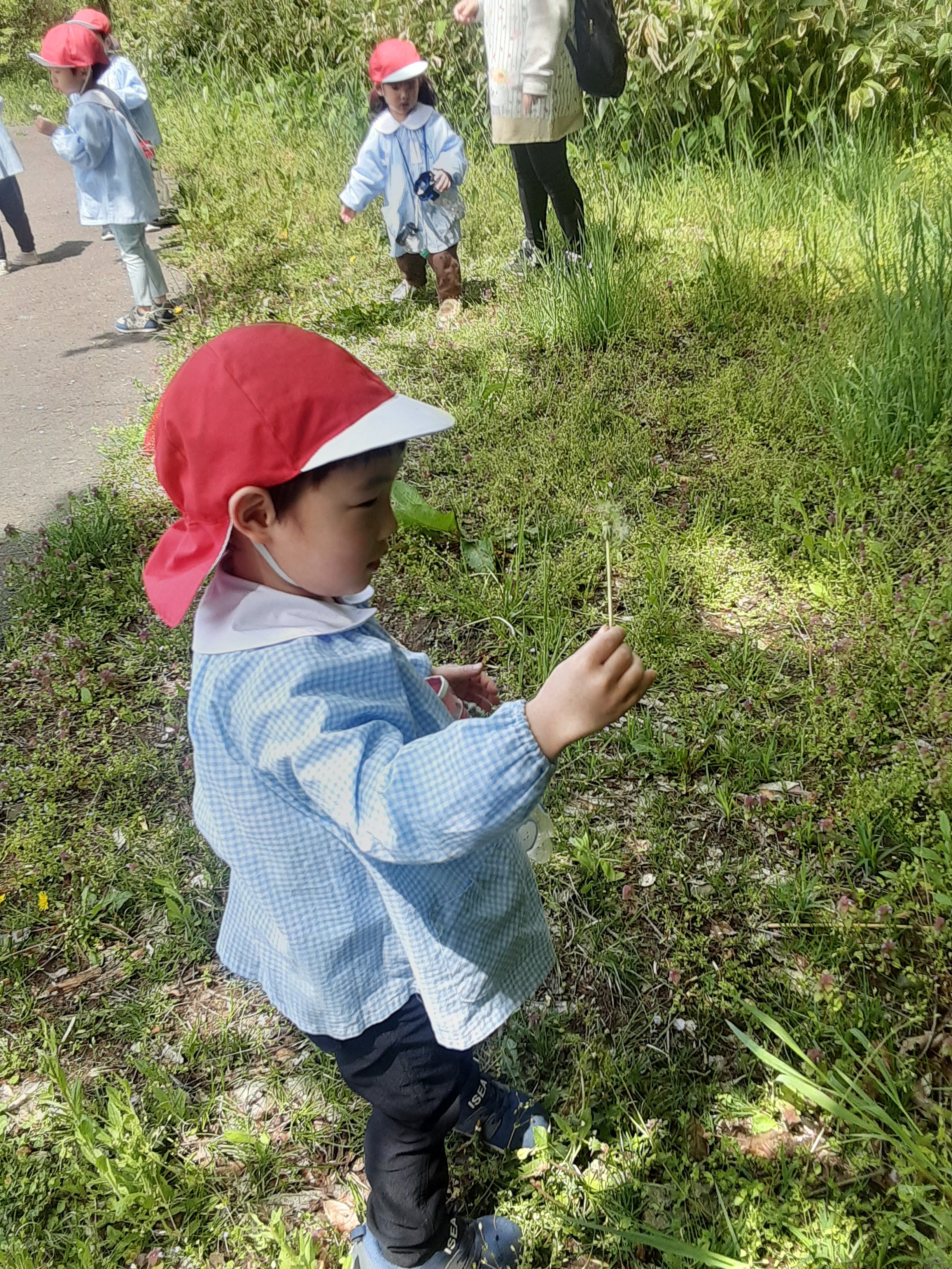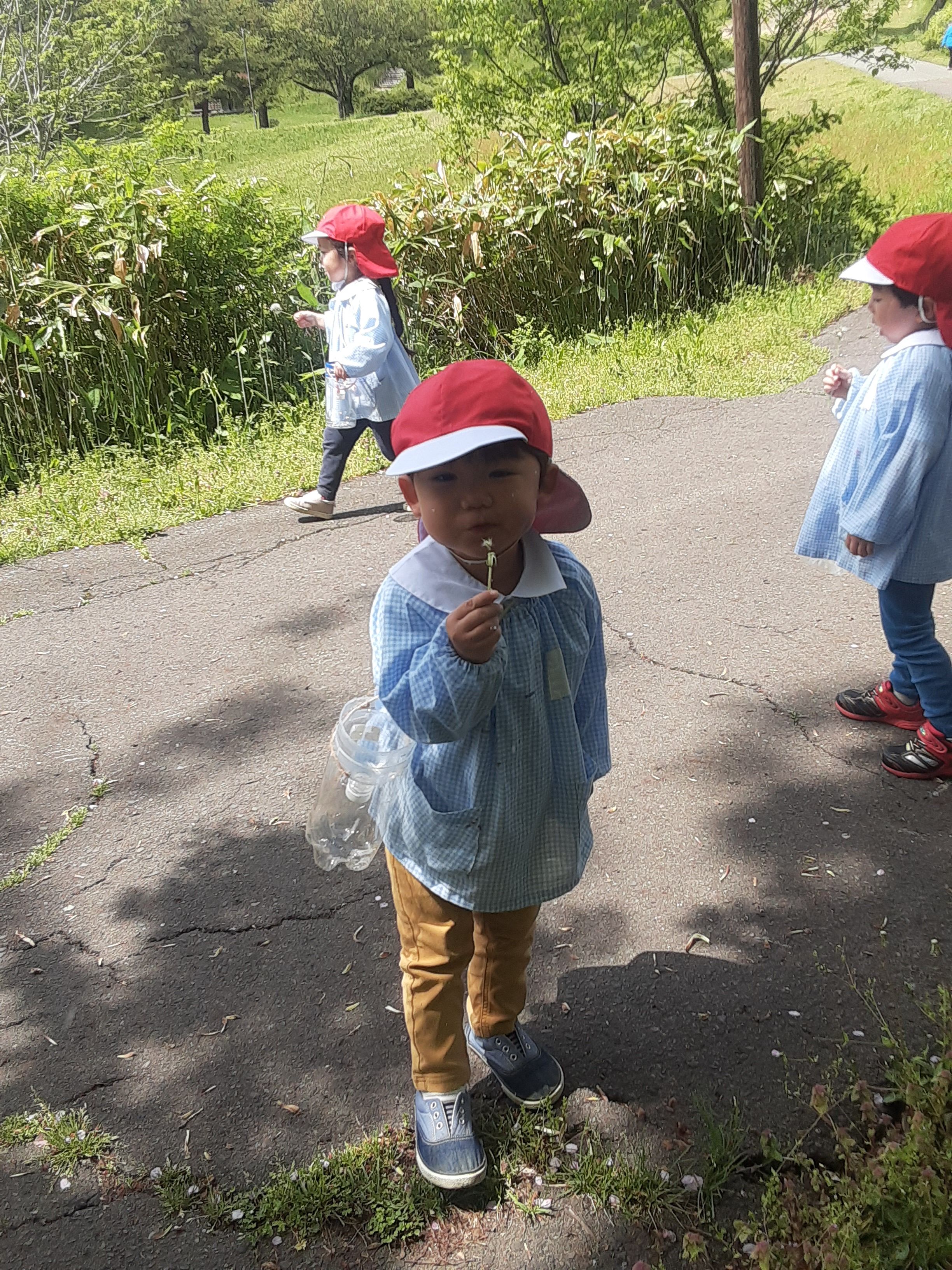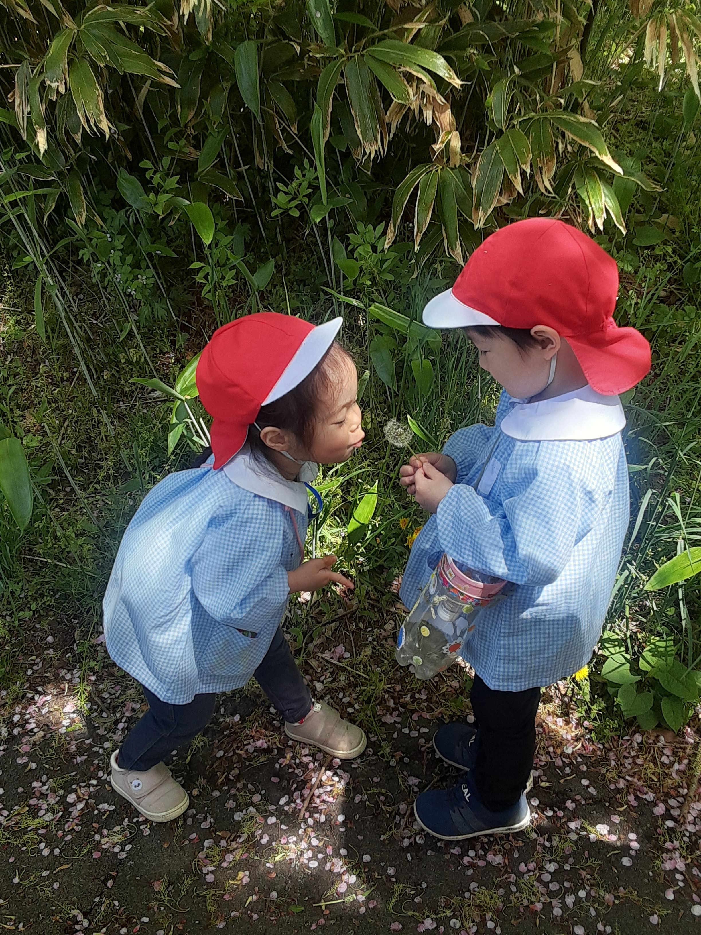 たんぽぽを見つけて綿毛にフーっと息を吹きかけていました♥️