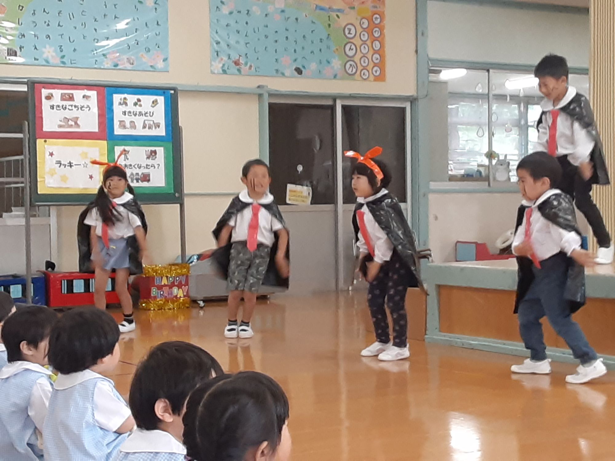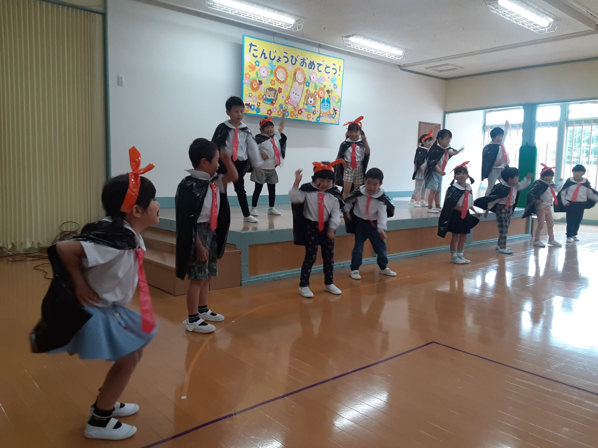 お祝いの発表はゆり組さんで、ブリンバンバンボンのダンスをしました☺️