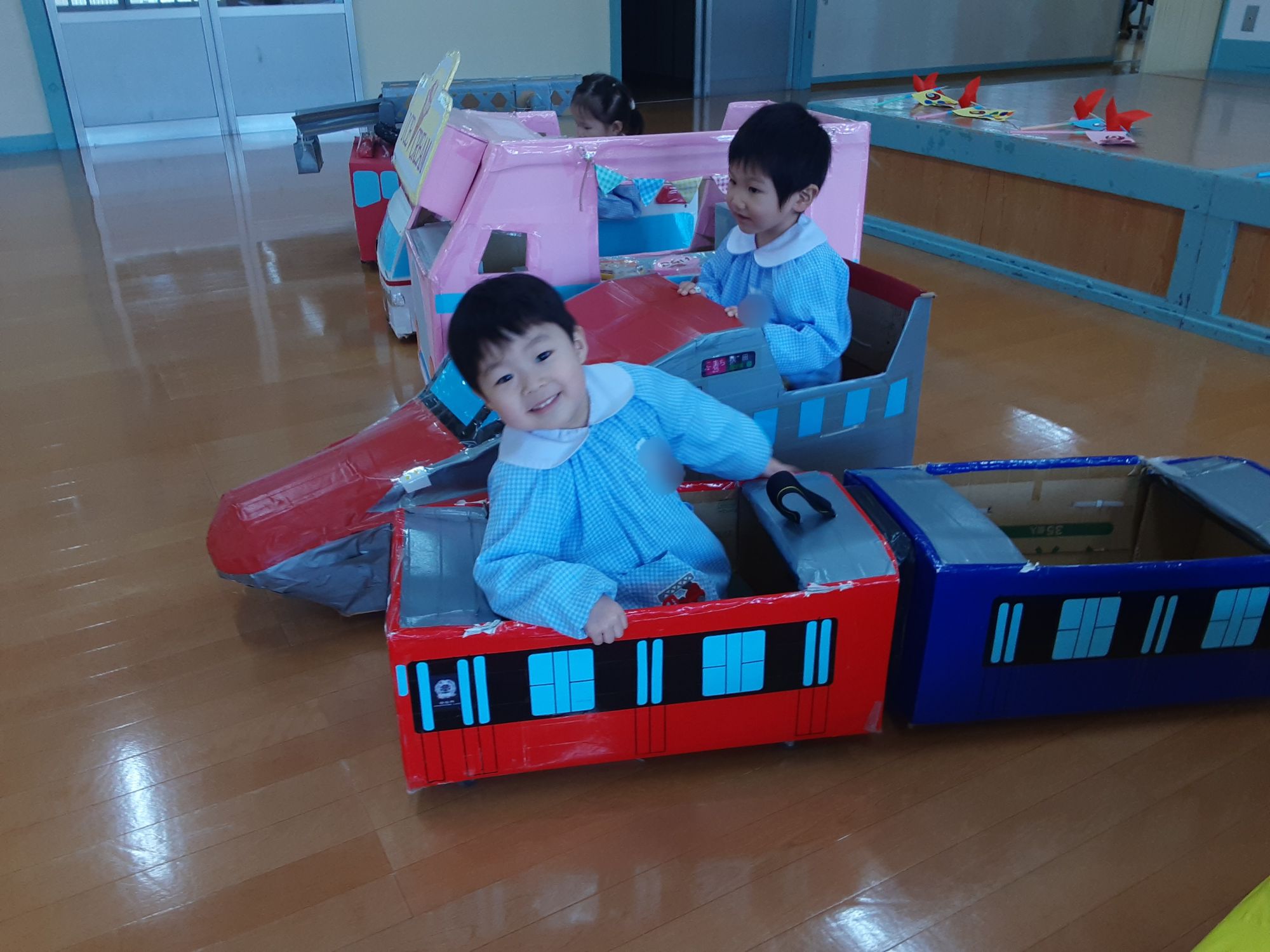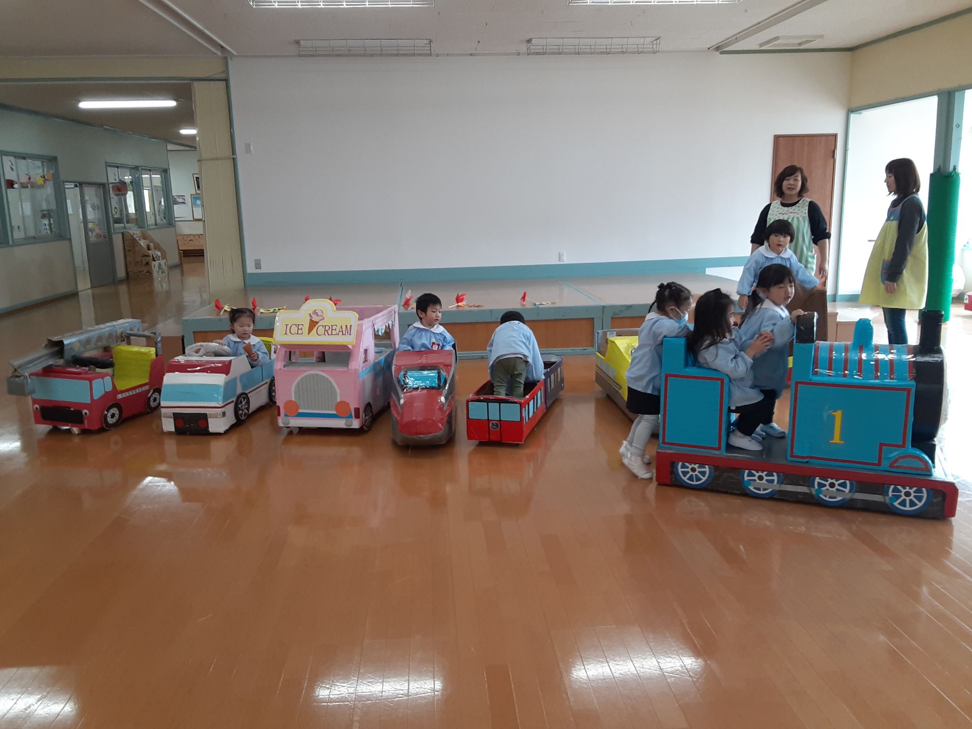 ちゅうりっぷ組は園長先生が作った乗り物で遊びましたよ🚄🚓