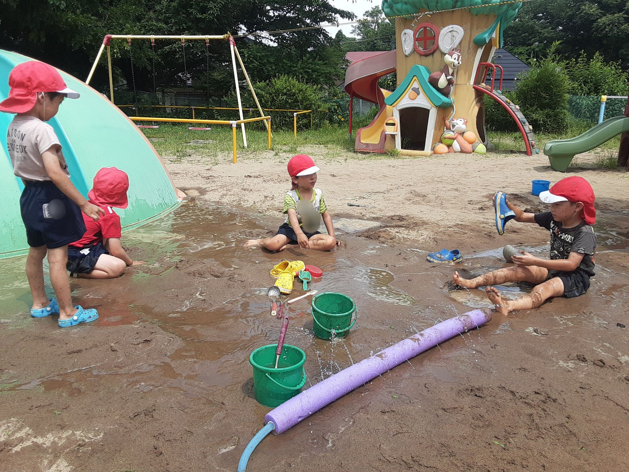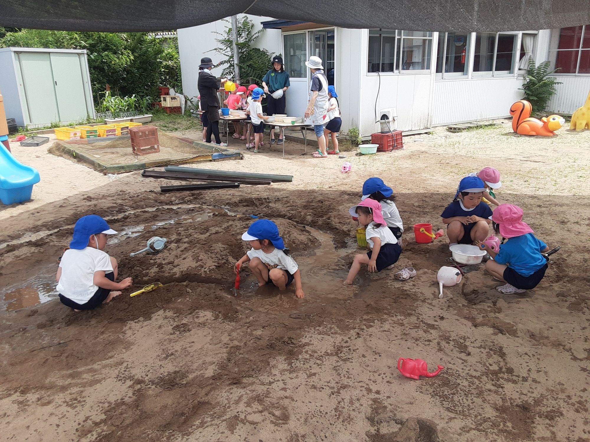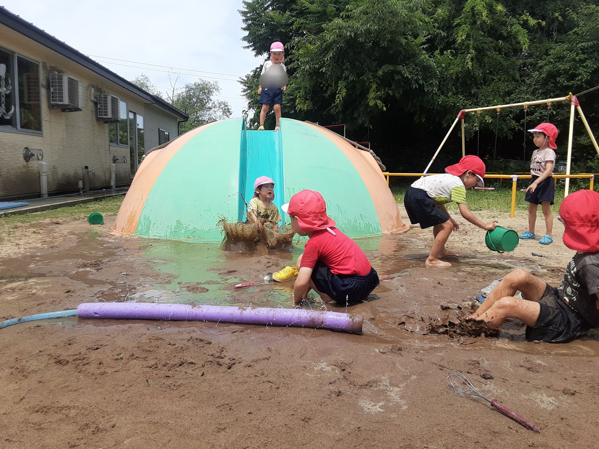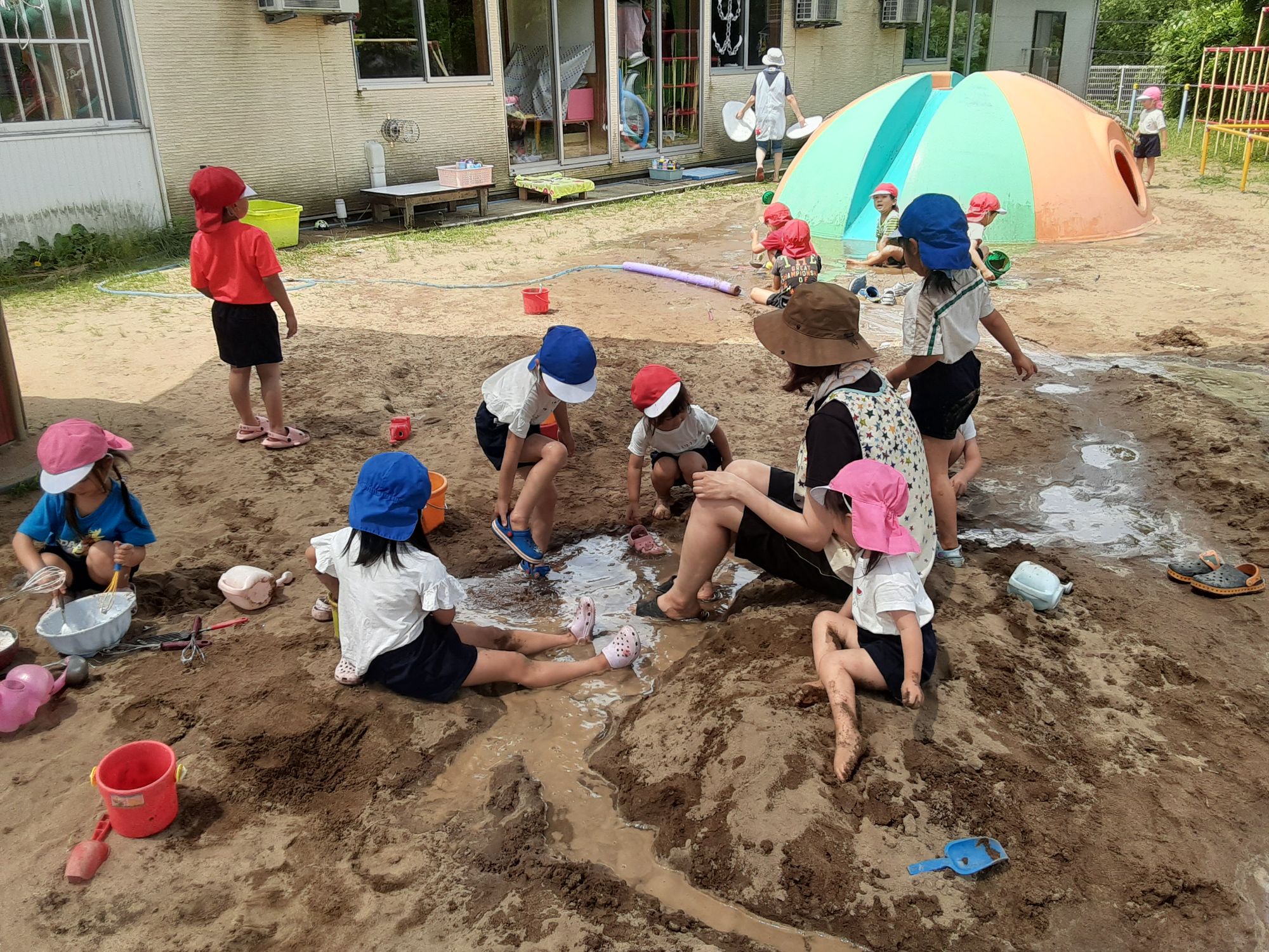 今日は天気も良く気温もあがったので全園児でどろんこ遊びをしましたよ🎵