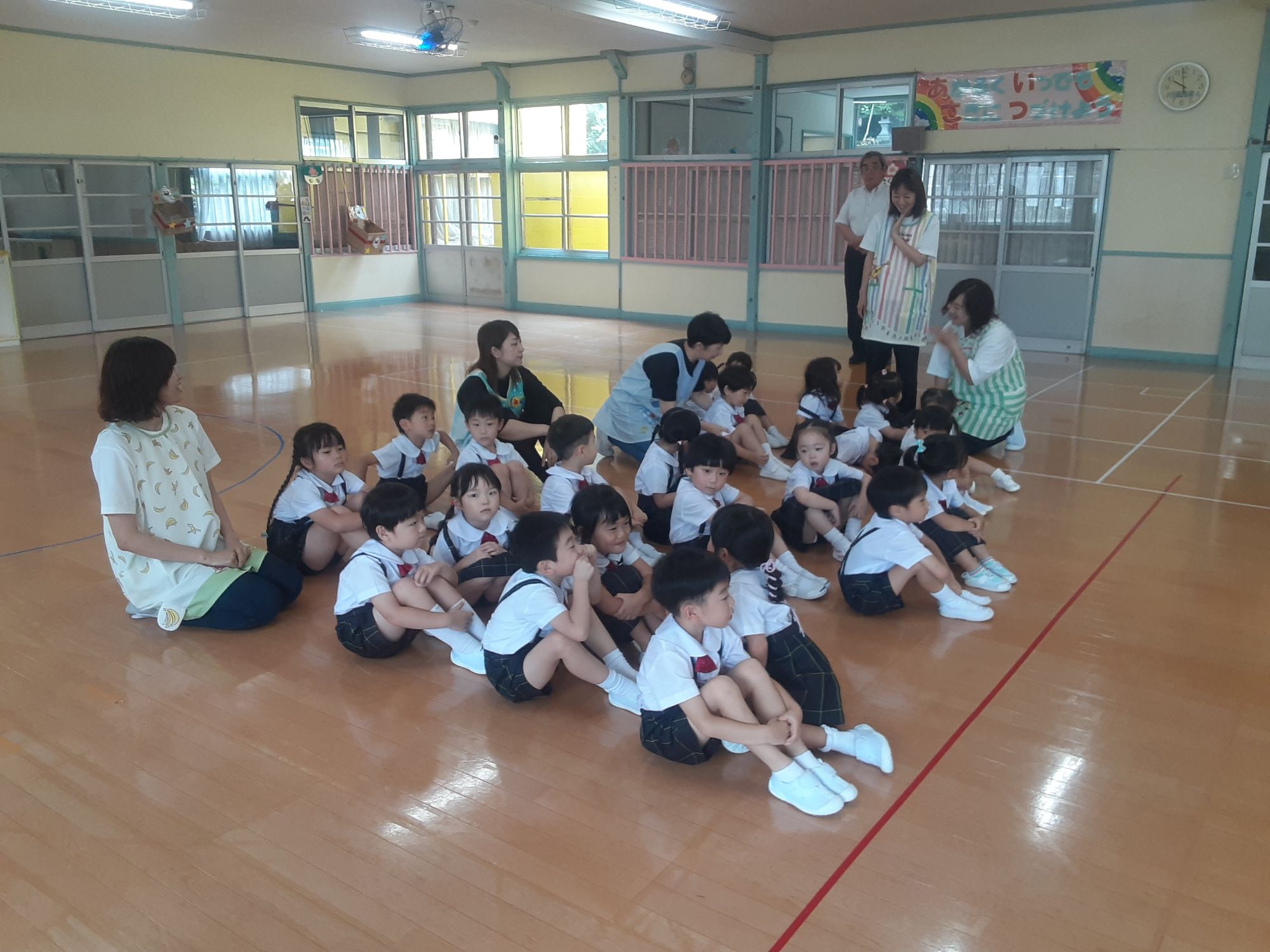 みんな元気に登園してくれて始業式を行いましたよ🎵