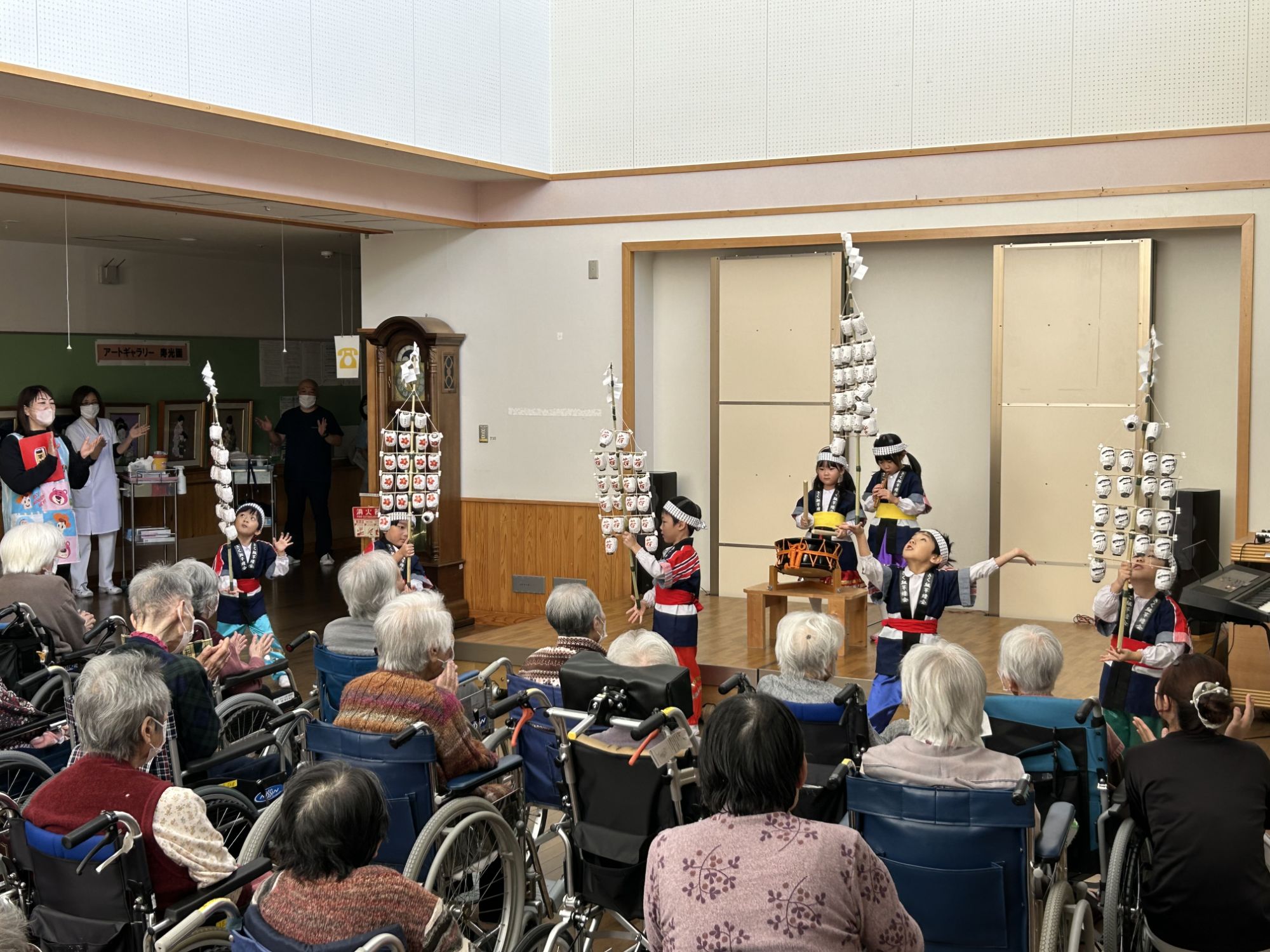 12日に寿光園に行きおゆうぎ会の演目を披露して来ましたよ🎵 きく組はダンスと竿灯です🏮 ちゅうりっぷ組はかわいいネコダンスです😸 ゆり組は歌を2曲披露して来ましたよ🎵 寿光園の方達も喜んでくれていました🙌 カテゴリー: 日記