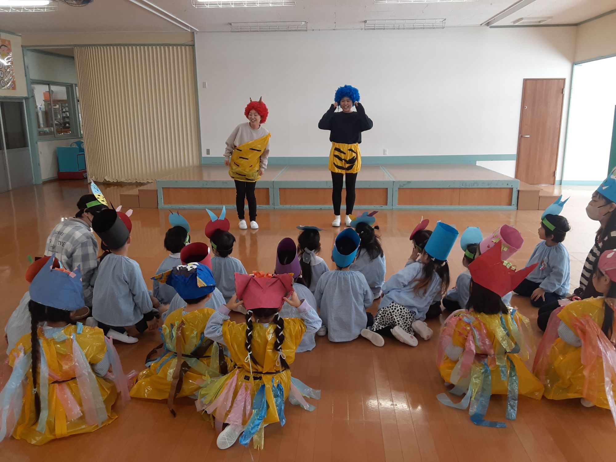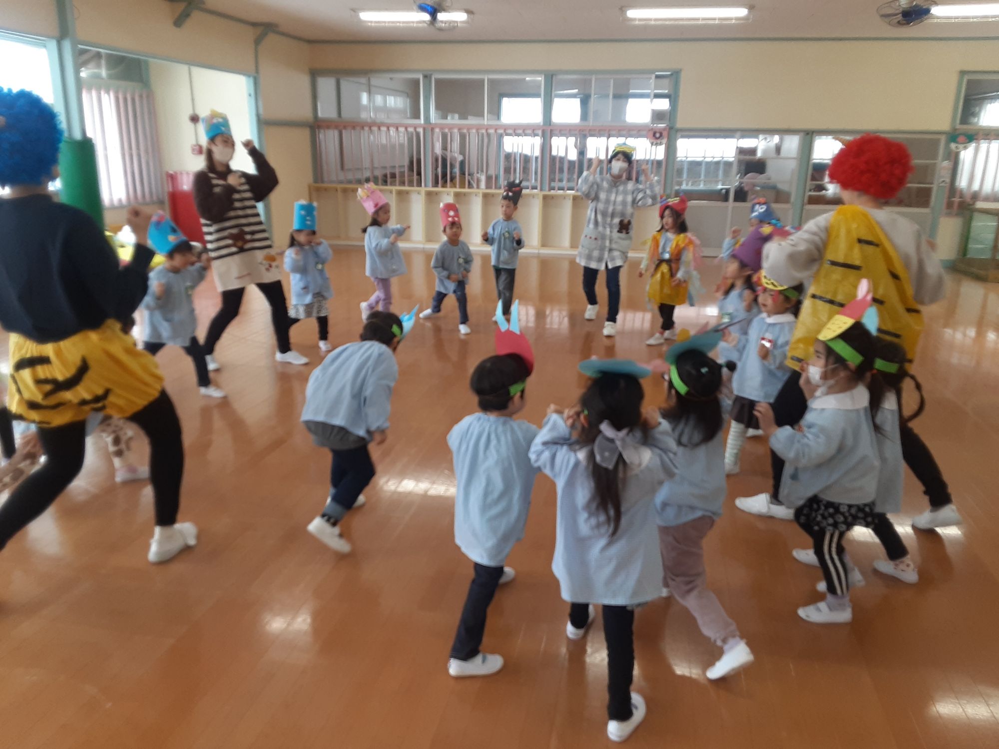 今日は節分会を行いましたよ☺クラス毎に素敵なお面や衣装を紹介しましたよ🎵