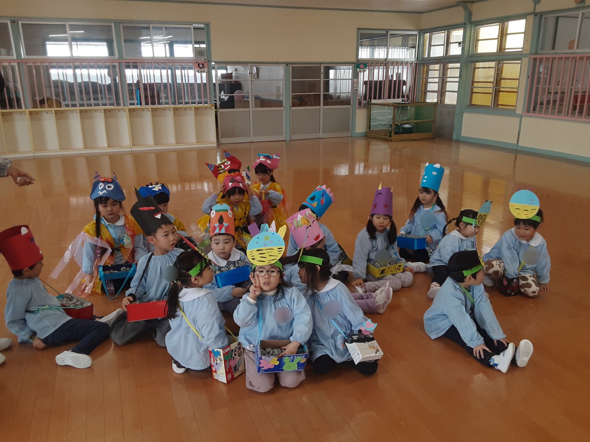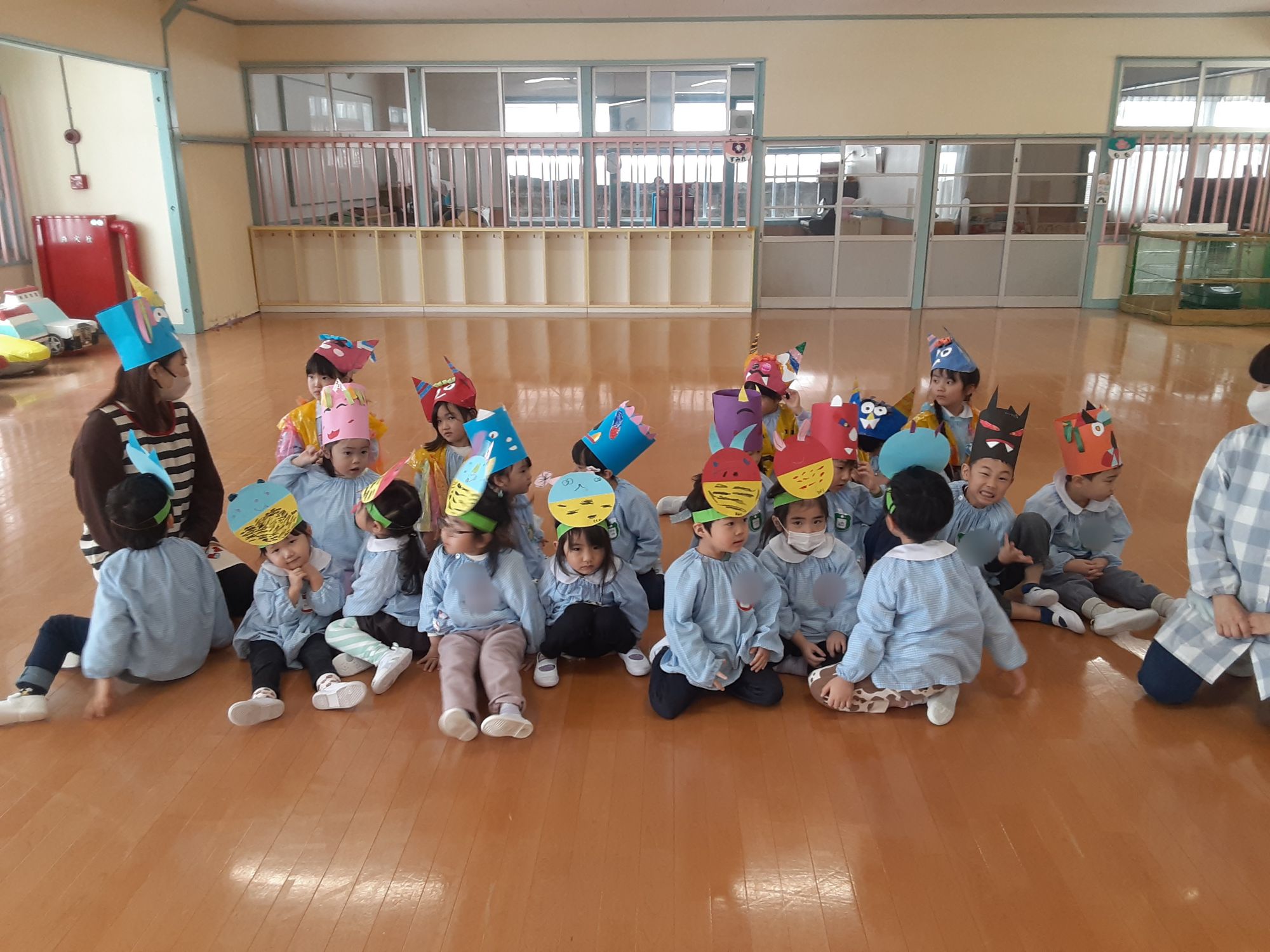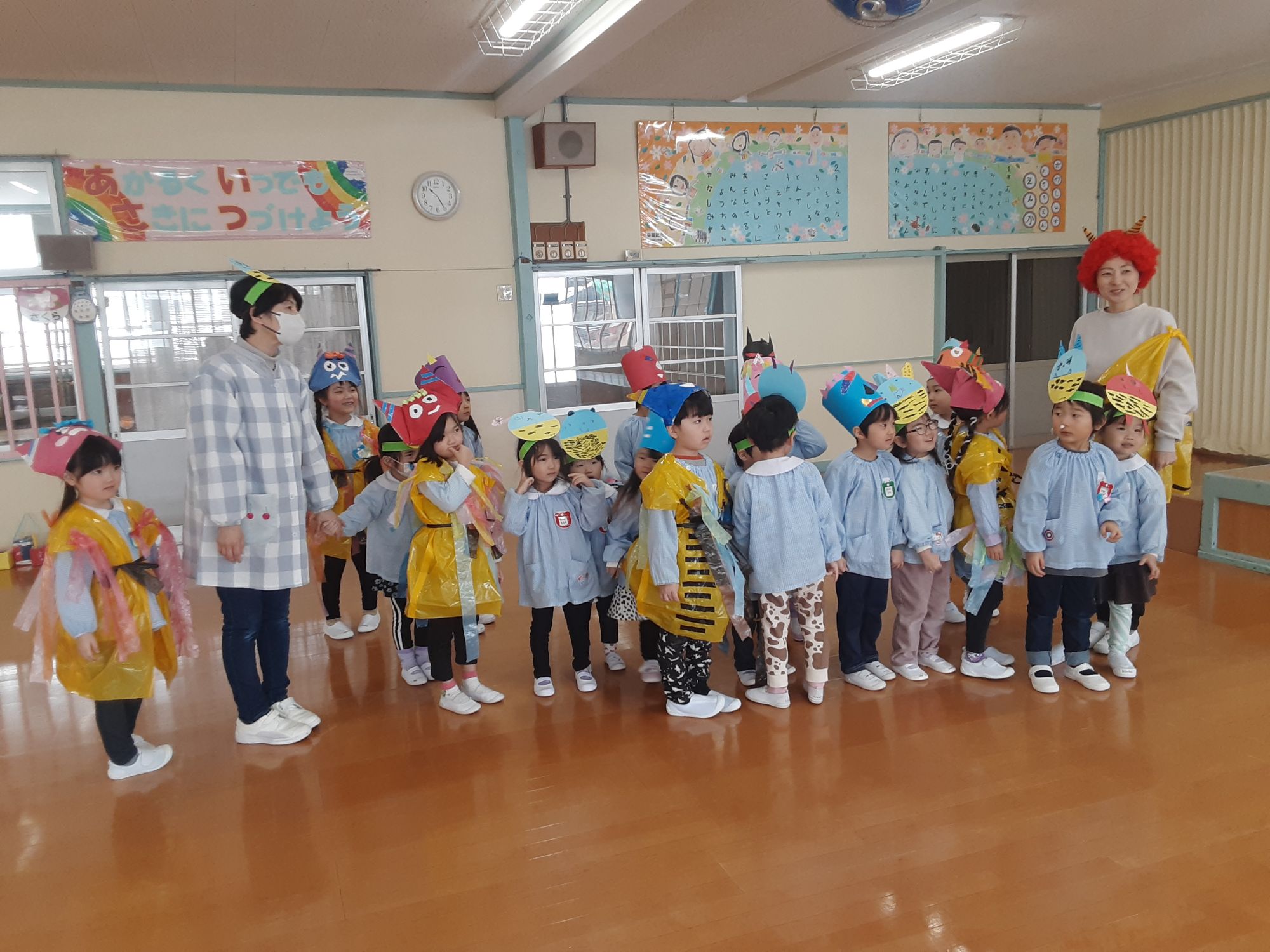 今日は節分会を行いましたよ☺クラス毎に素敵なお面や衣装を紹介しましたよ🎵